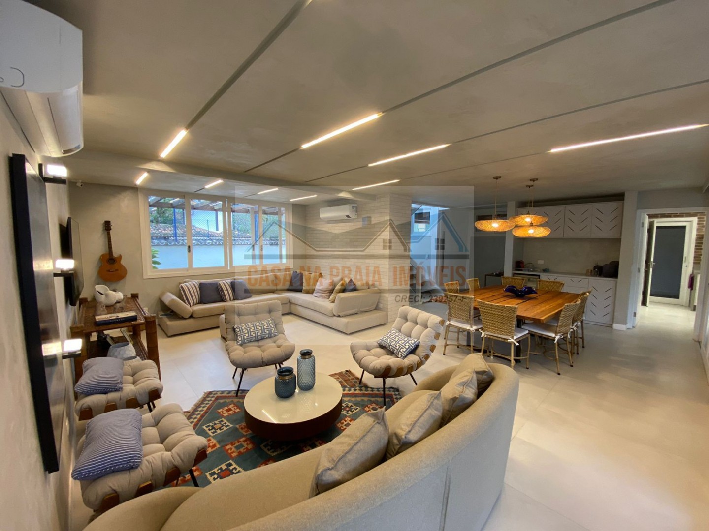 Belíssima casa totalmente modernizada em condomínio pé na areia com 450m² de área construída.