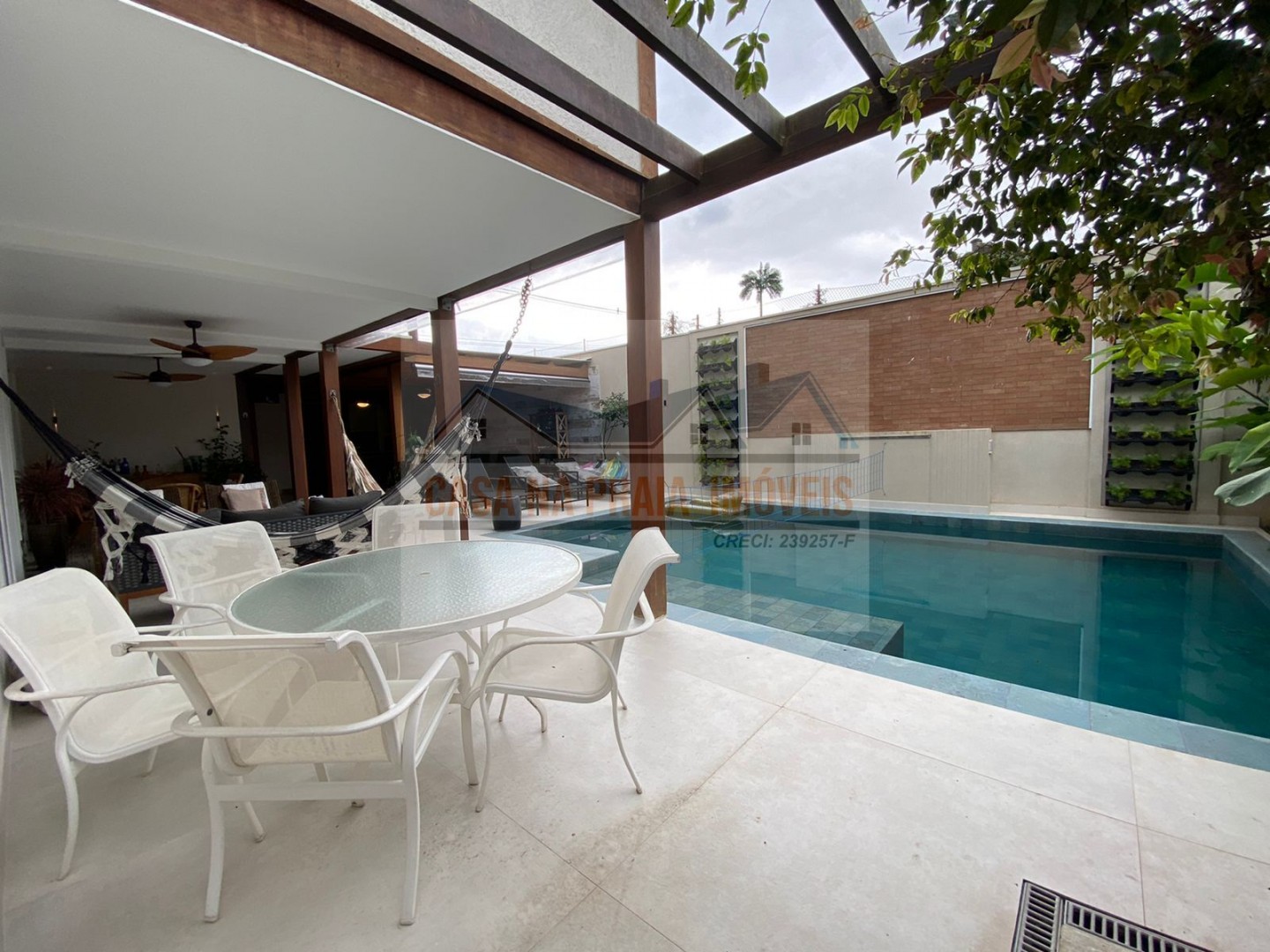 O imóvel dispõe de sala de estar, sala de tv e sala de jantar, 6 suítes, 1 lavabo, 1 área de seriço, cozinha, uma generosa área gourmet com churrasqueira, forno de pizza, piscina e ducha.