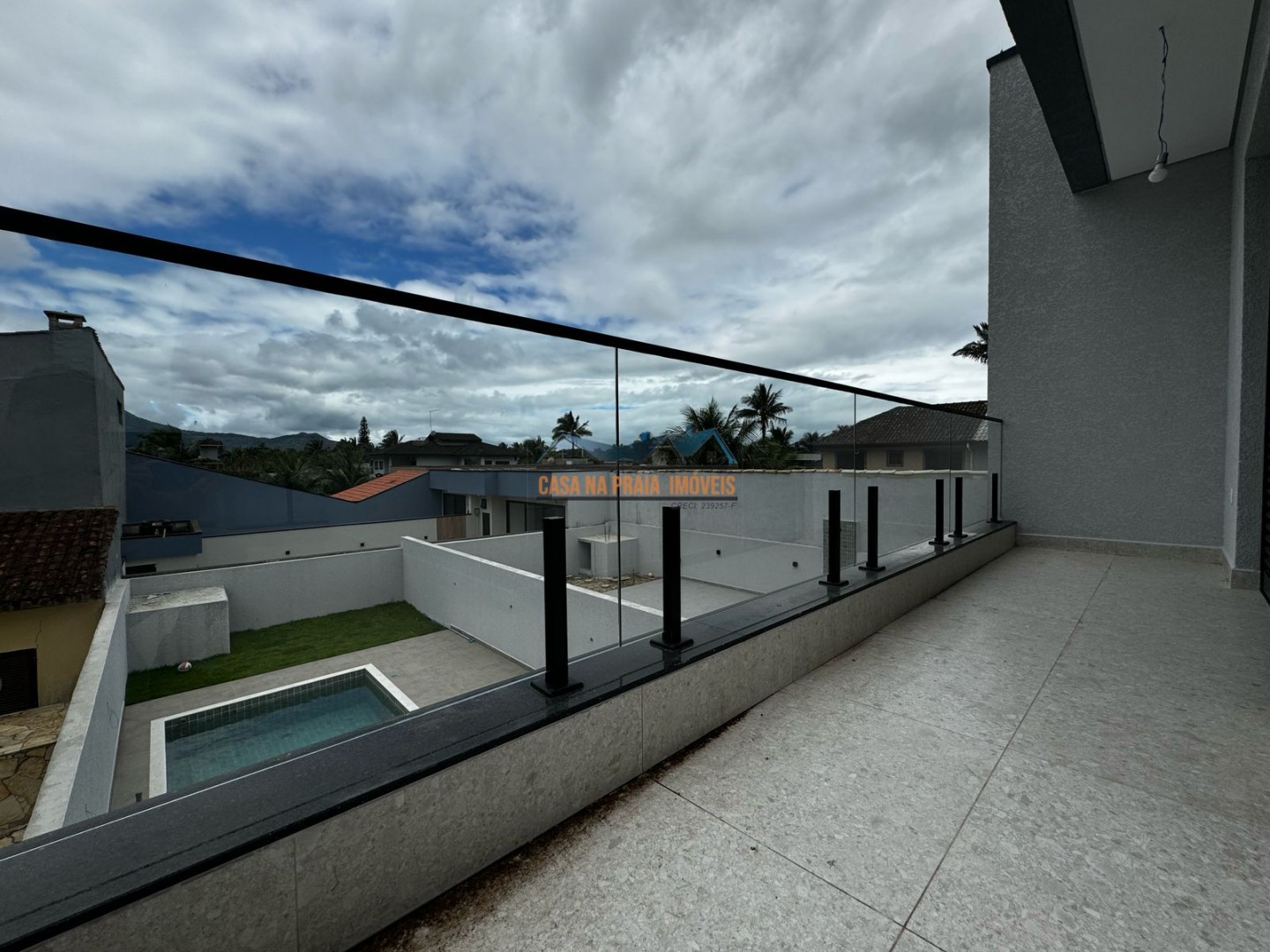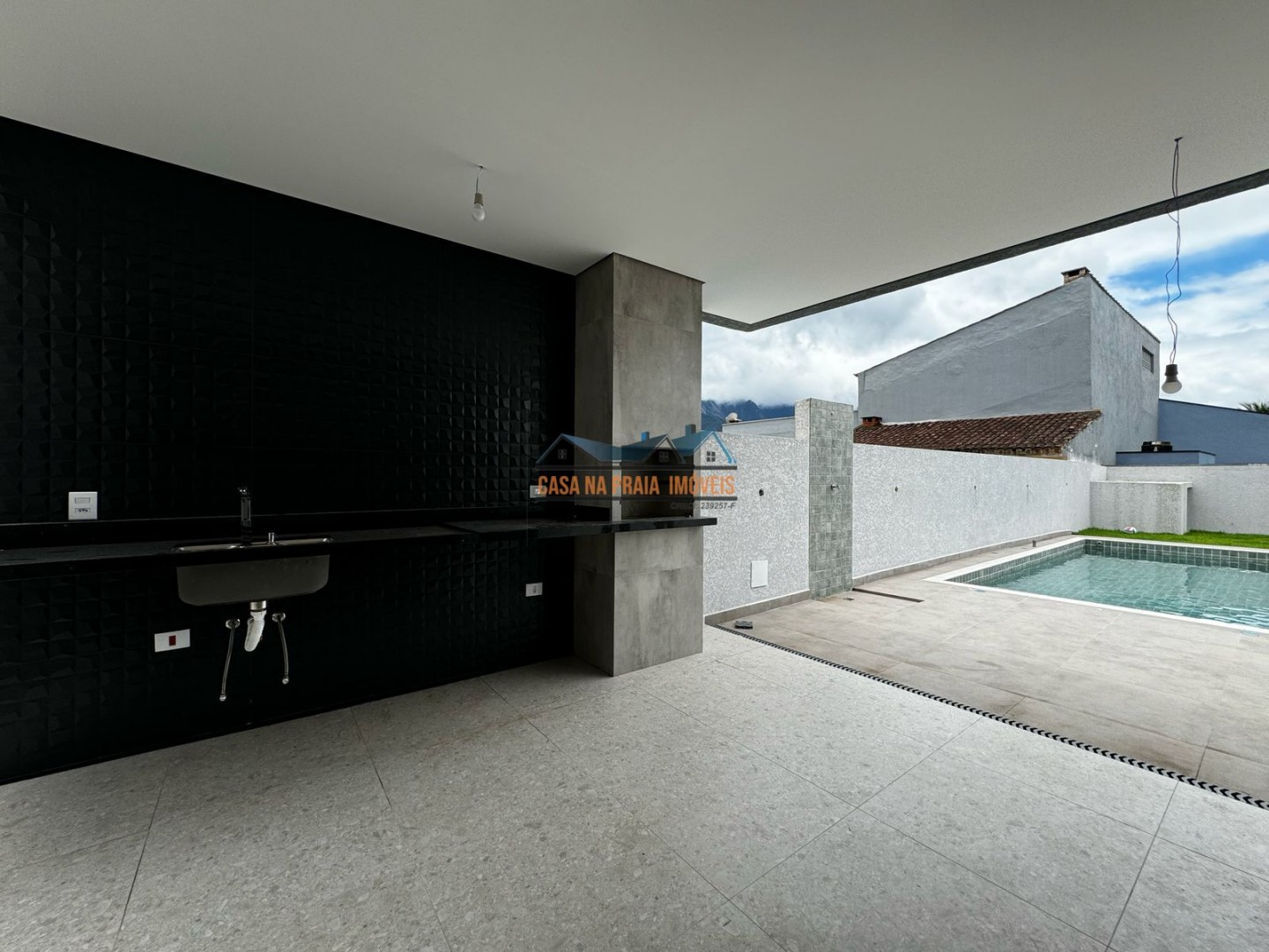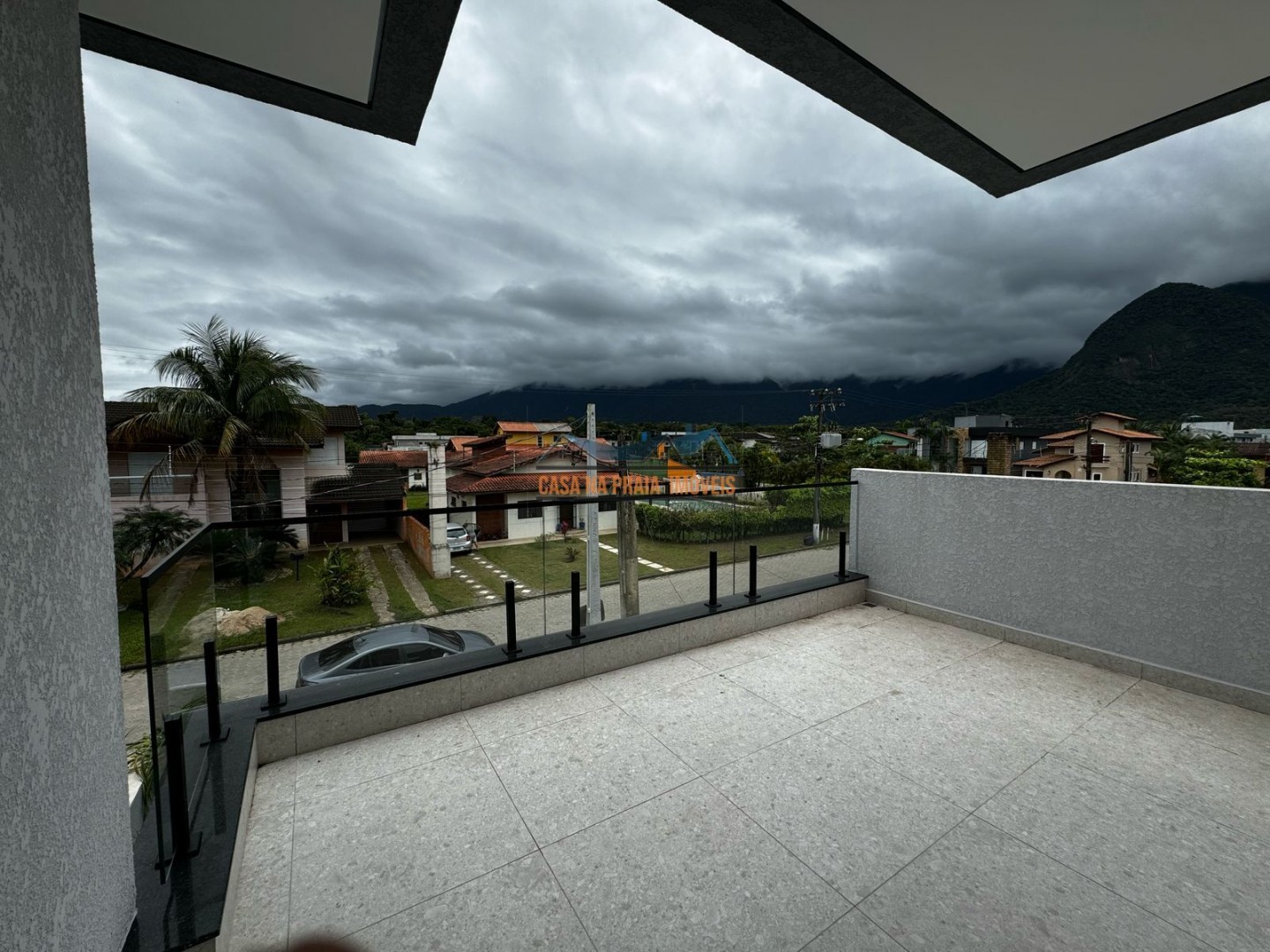 Sobrado moderno, construído recentemente, com vista par as montanhas